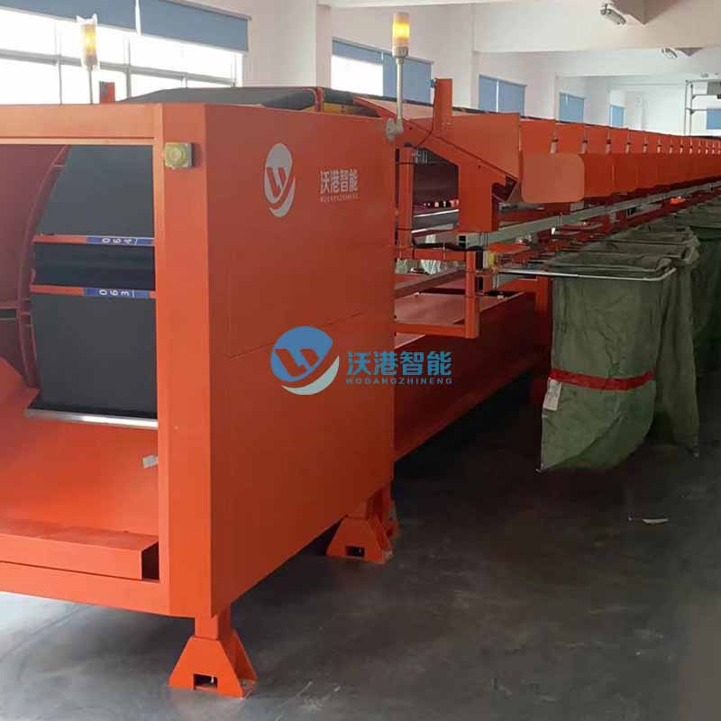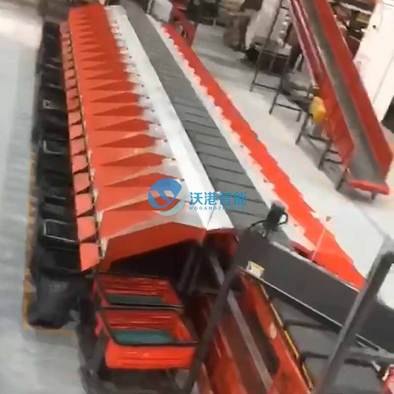 3、進貨裝置:或稱喂料器,它把被揀商品依次均衡地進入分揀傳送帶,與此同時,還使商品逐步加速到分揀傳送帶的速度。